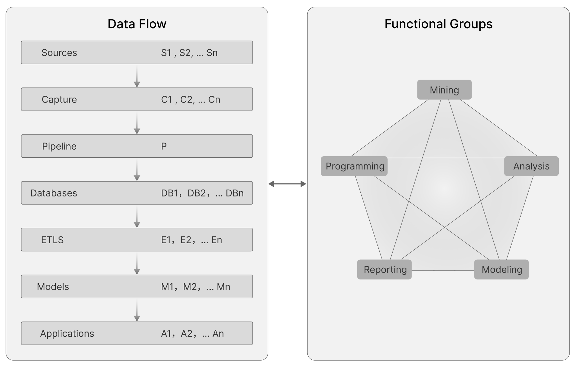 Then, data passes through processing layers as it is stored, refined, and prepared for use in Machine Learning models and applications. In a more functional perspective, the data is then used by different machine learning function groups, as shown below: