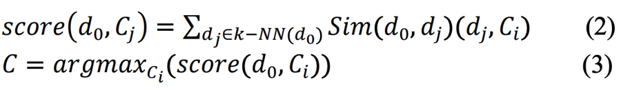 K-Nearest Neighbor Classifier: k-NN is a supervised learning algorithm based on the samples' distance (or similarity). This method's classification process is time-consuming, and estimating the most suitable k value is hard. K-NN classifier finds the k closest neighbors by distance function and uses category weights of these neighbors to assign a category to test sample. The distance (e.g., Euclidean, Manhattan, Minkowski, etc.) or similarity function may differ. However, Euclidean distance is generally used to determine the closest neighbors in the K-NN classifier. Let d0, 𝑑j ∈ 𝑘𝑘 − 𝑁𝑁(𝑑0), and 𝐶 represent the test sample, k closest neighbors, and category set, respectively. Then, assigning a category to a test sample using the category weights of its k closest neighbors is performed as in Eq. (2) and (3):